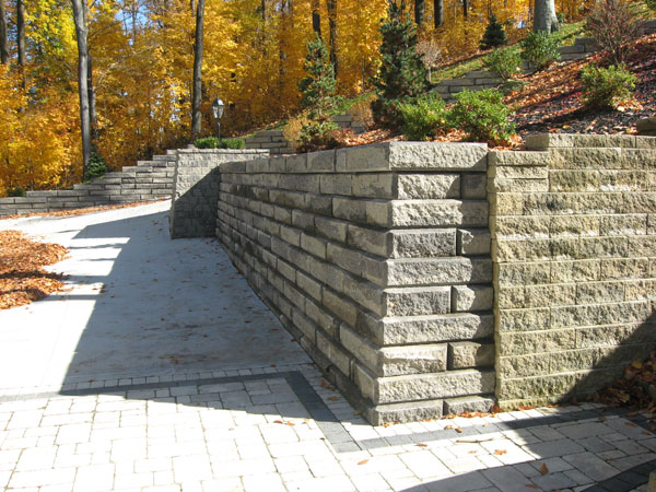 Retaining walls can be built out of man-made products or natural stone products, depending on what look you desire. Retaining walls are built for many reasons. These walls can be built to retain a certain area or create a space that is more usable because of its step grade. They have many different functions but provide a solution for areas that would otherwise be un-functional. We install all retaining walls, including small residential up to large commercial walls.